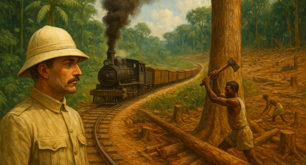 L’exploitation industrielle des forêts d’Afrique centrale remonte à la fin du XIXᵉ siècle, lorsque la France et la Belgique ont instauré les cadres juridiques et logistiques nécessaires pour extraire le bois tropical. Les lignes ferroviaires et les ports construits par les colonisateurs avaient avant tout pour fonction d’évacuer les grumes vers l’Europe. Cette structure a posé les bases d’un modèle d’exploitation unilatéral, où les populations locales ne bénéficiaient ni des retombées économiques ni du contrôle sur leurs ressources.